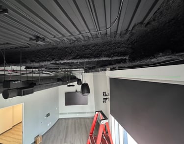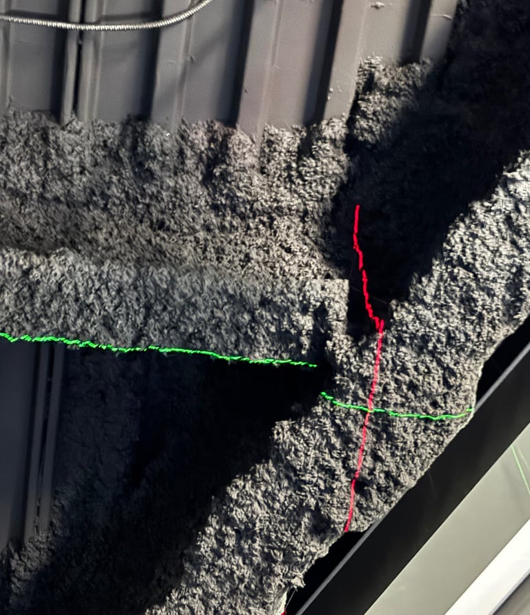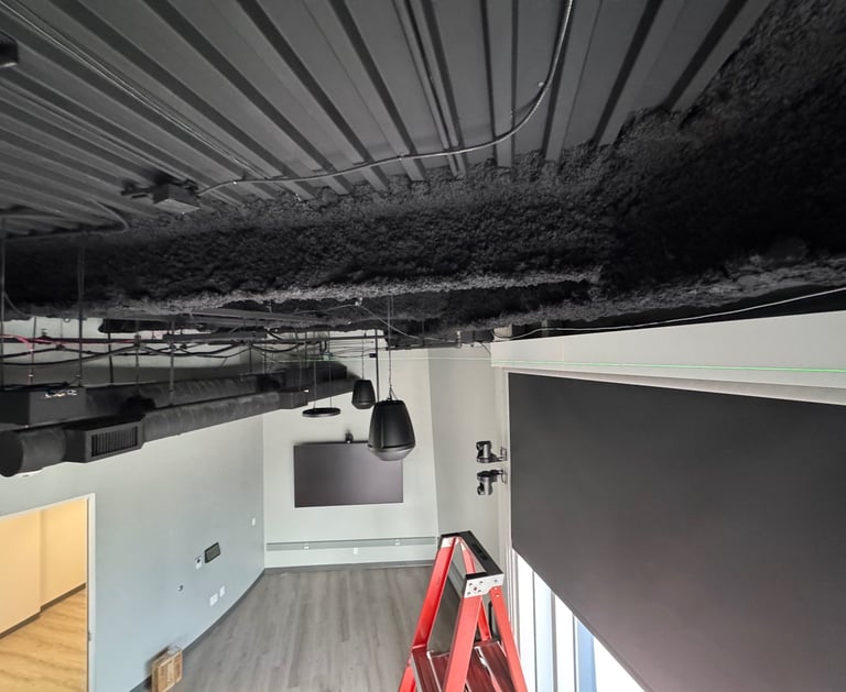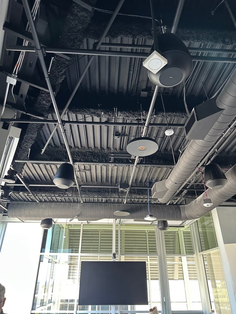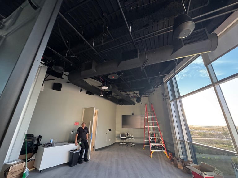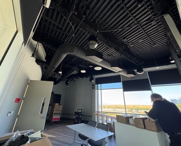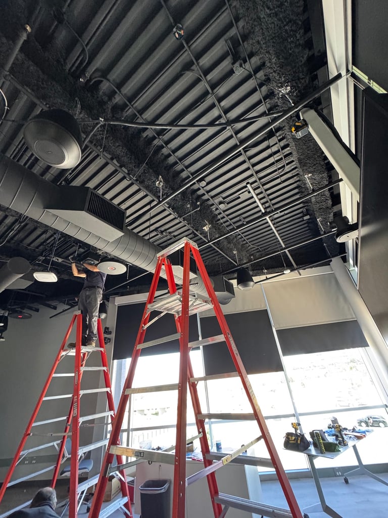 The drafted height of the grid had significant interference from HVAC and other systems. A new height was set with a laser so that clearances could be checked.