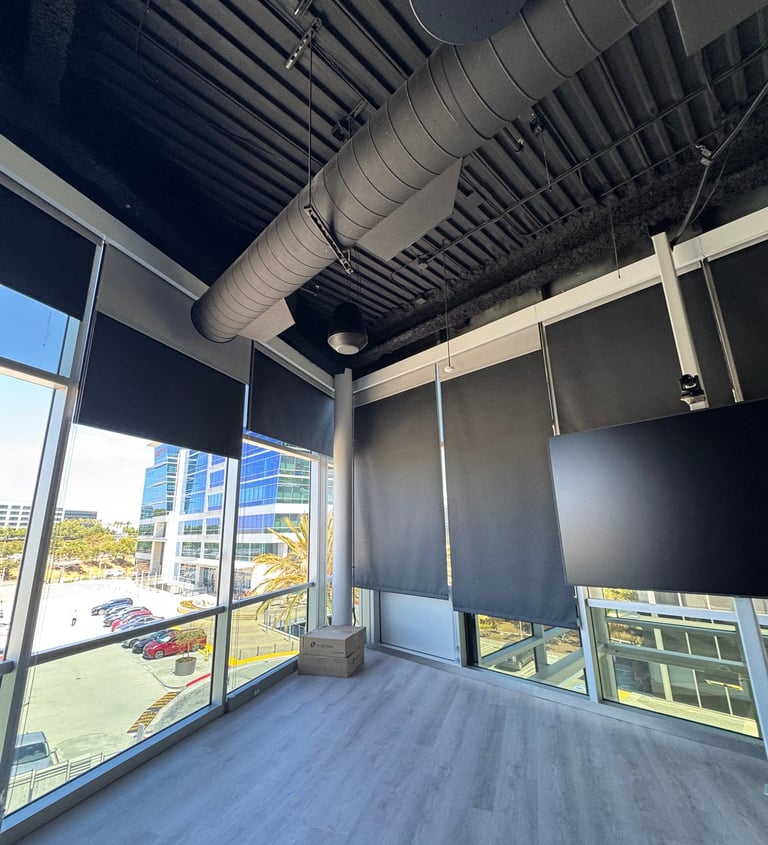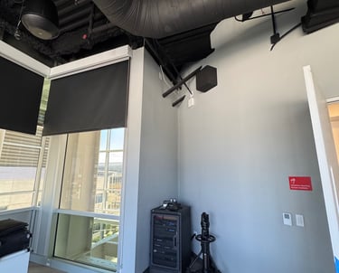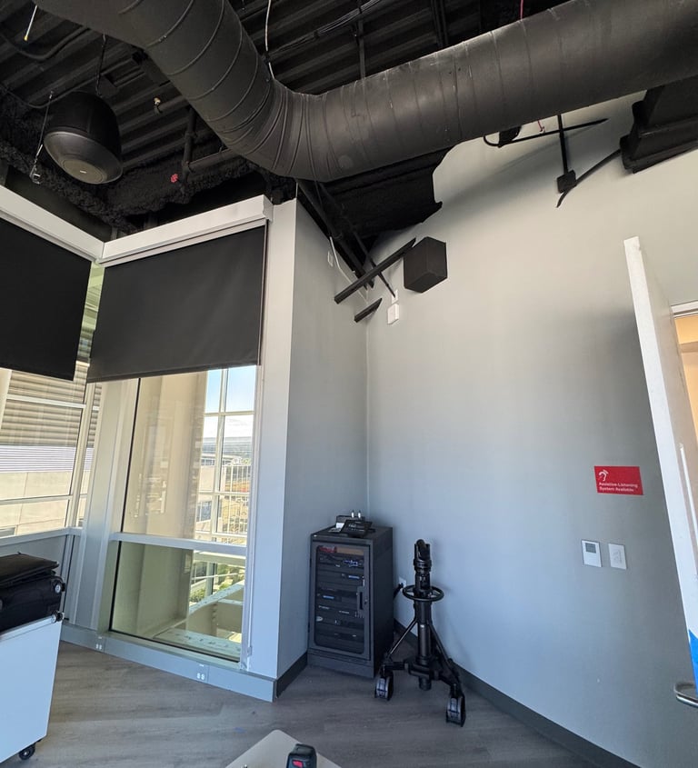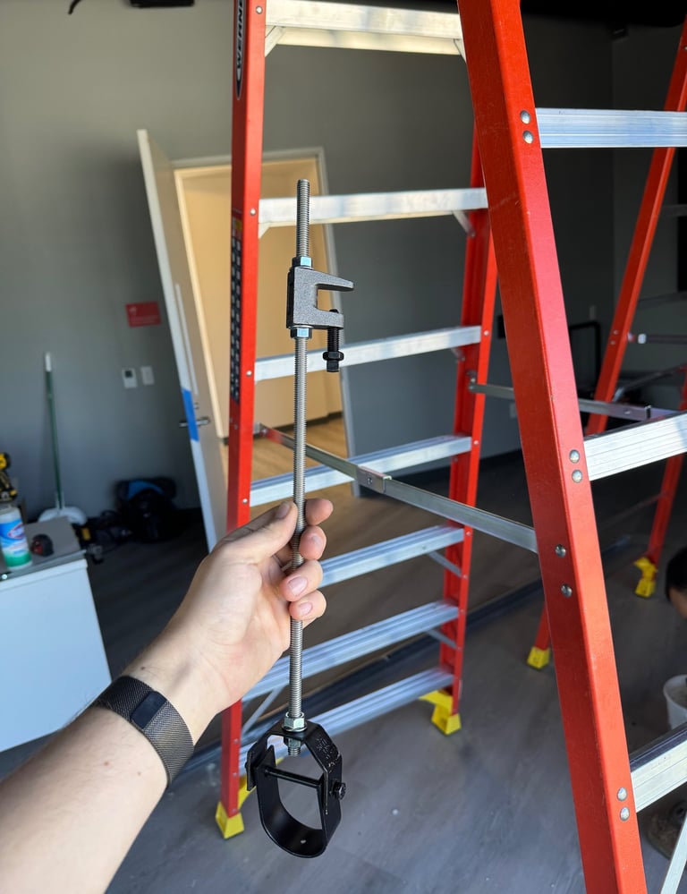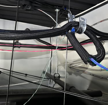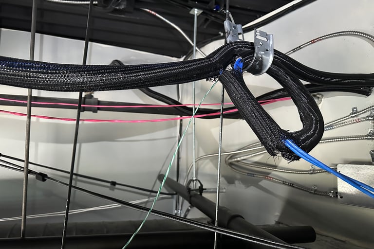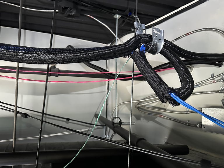 Only one corner is square, and all points use beam clamps along parallel I Beams. A curved section had to be followed. Maneuvering cross-pipes in the small corner was immensely difficult due to obstruction from the walls and HVAC.