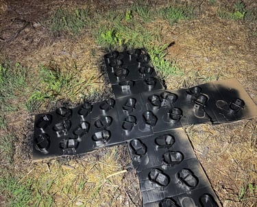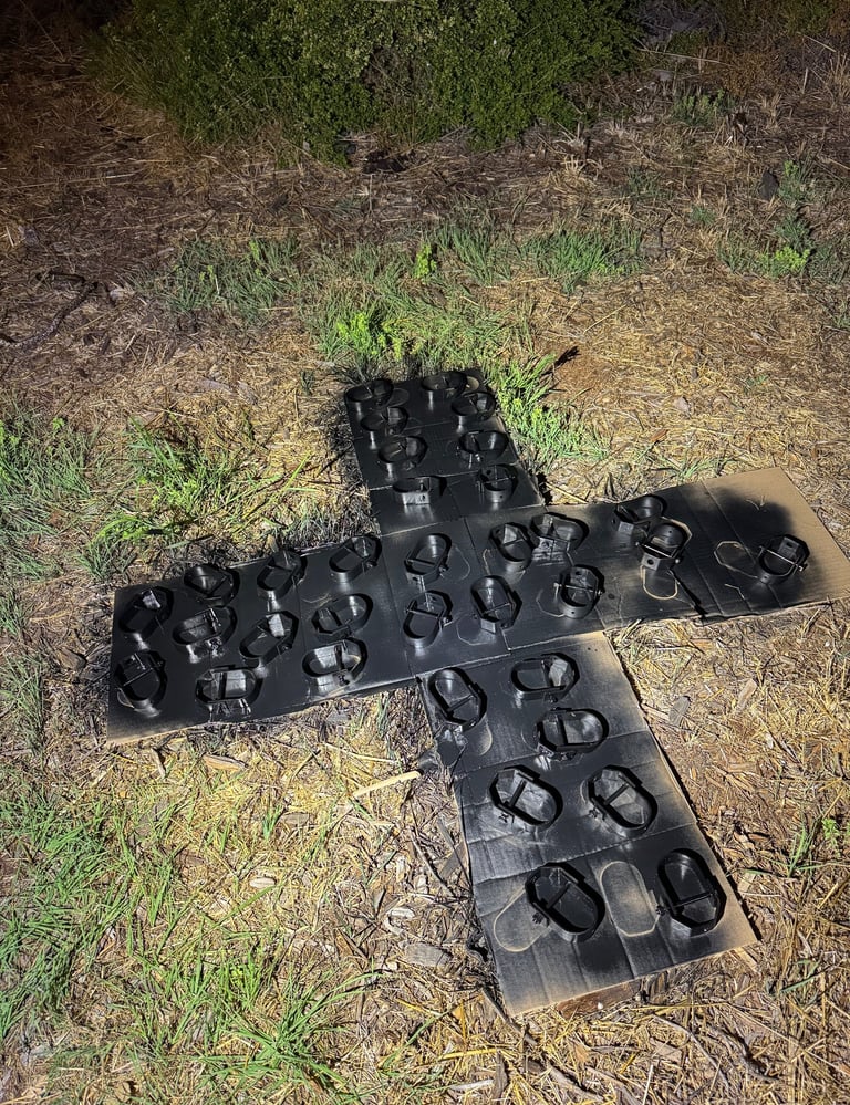 Multiple laser levels, laser tapes, and measuring tapes were used to calculate an array of pick points to be perfectly in square