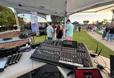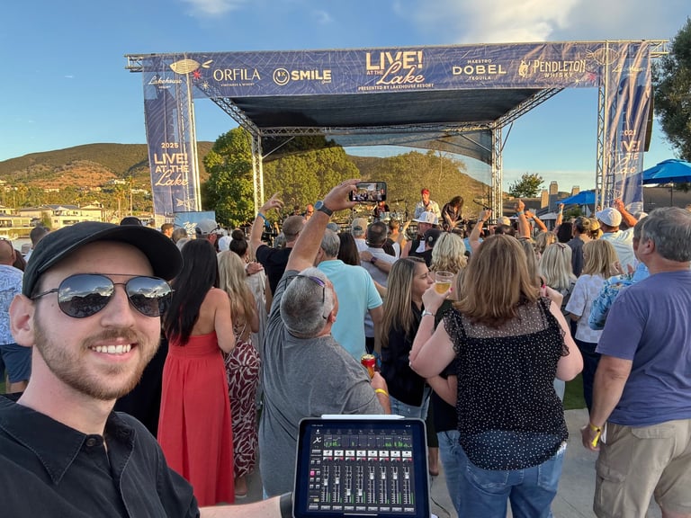 A non-ideal mix position required the bulk of the show be mixed via iPad from the listening position. IEMS and wedges were checked before the event and remained mostly self sufficient.
