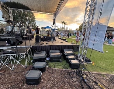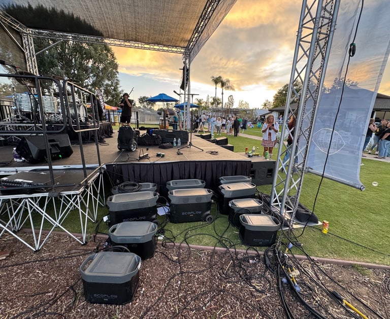 All PA was powered by a number of ECOFlow batteries. It was smooth sailing (pun intended) except for the subwoofers which would put the batteries into protection mode when driving them loudly. I think the short impulse of high current triggered internal battery protection in a way that does not typically trip mains circuit breakers.