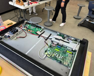 Remove a million screws, pop the lid, disconnect the ribbon cables, separate the clamshell