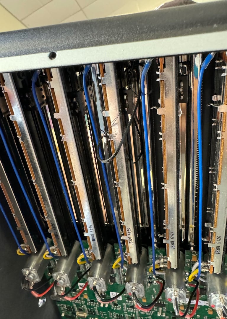 Cut the wires, uninstall the old fader, solder the new fader leads to the PCB, tighten